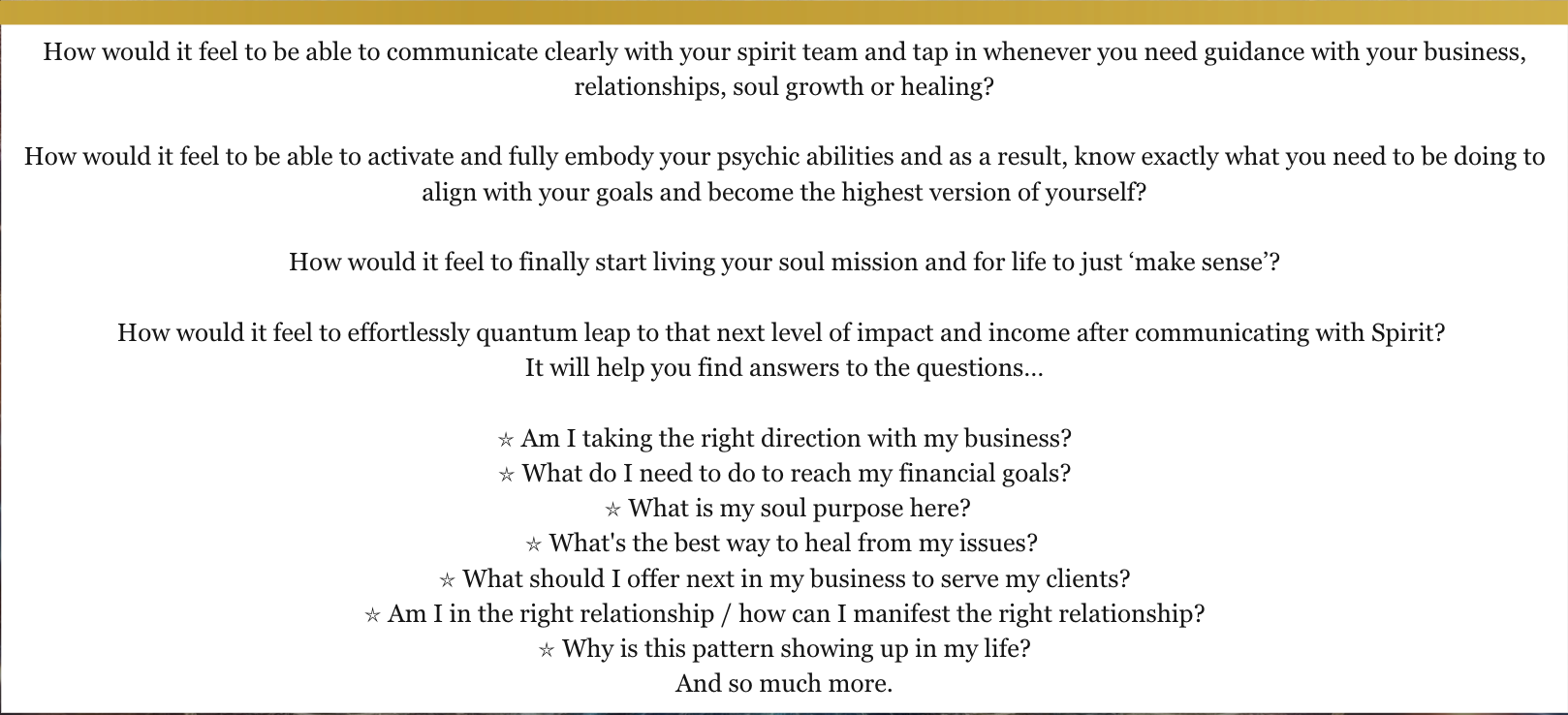 Thankfully I learned that there’s a much simpler way to easily and effortlessly channel your spirit guides to create the life and business you desire you want