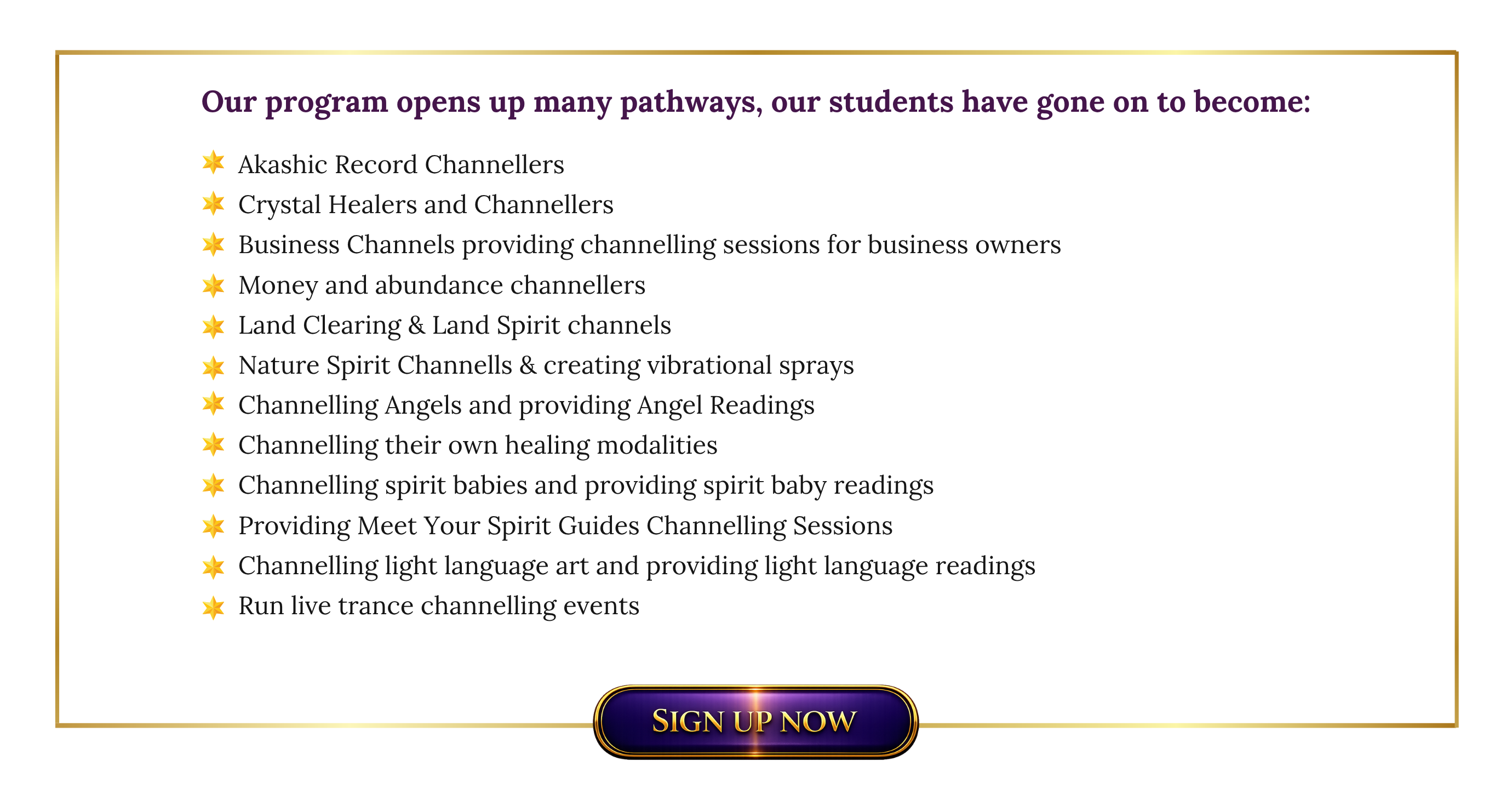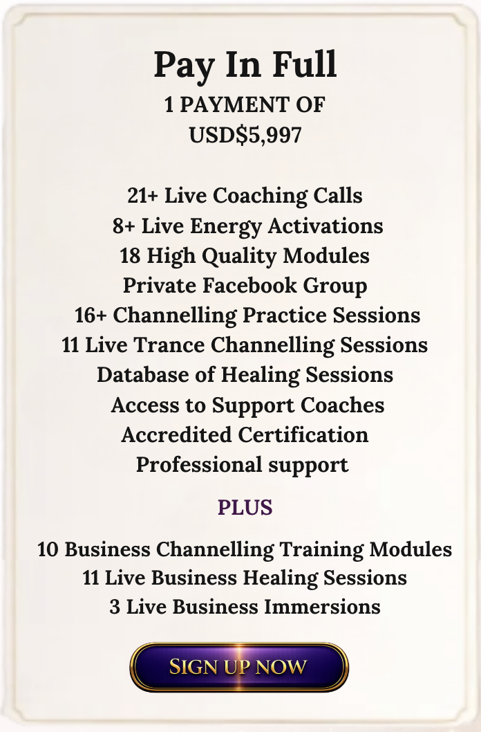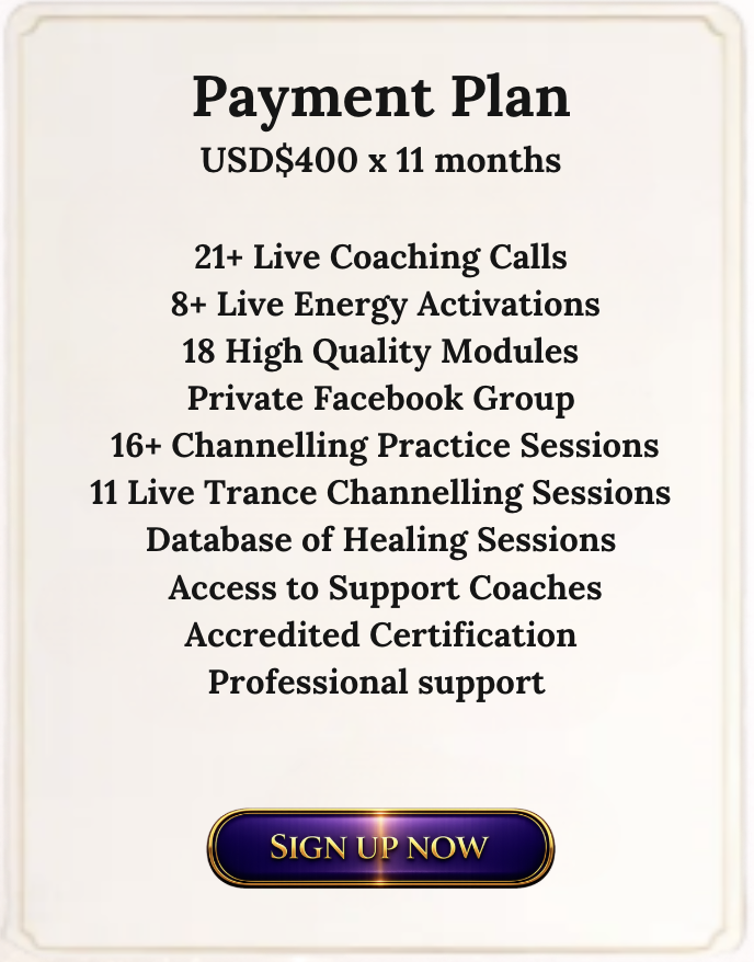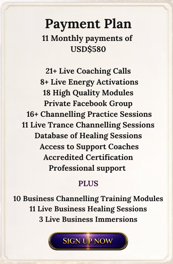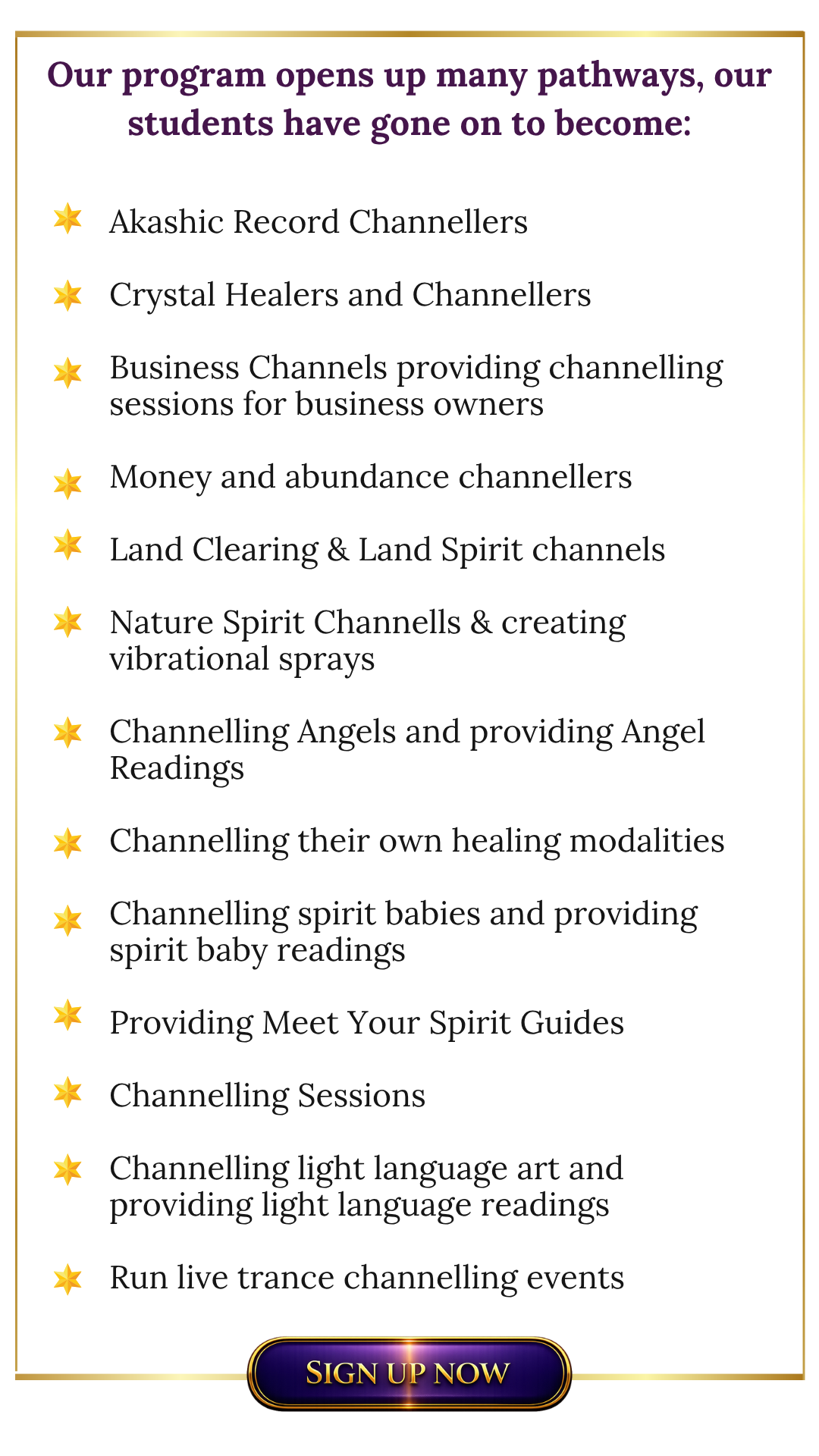 I’ll be here to guide you. You will get the BEST transformational channelling program you’ve ever experienced in your entire life, but you must show up for yourself first, and push that SIGN UP button to see the effects.