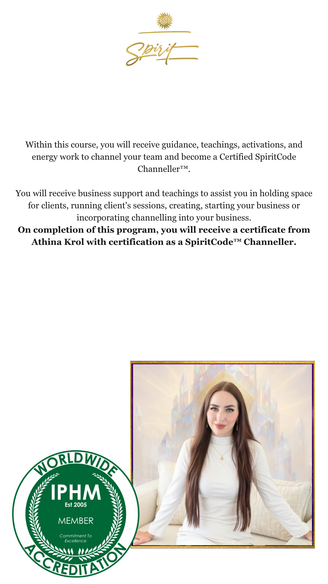This is THE channelling program, - a truly transformational program that will show you how to work with the spiritual realms to manifest your highest desires, create success in your business, activate your soul purpose, set up your own business as a channeller, or just use your newfound channelling abilities to create the life you want.